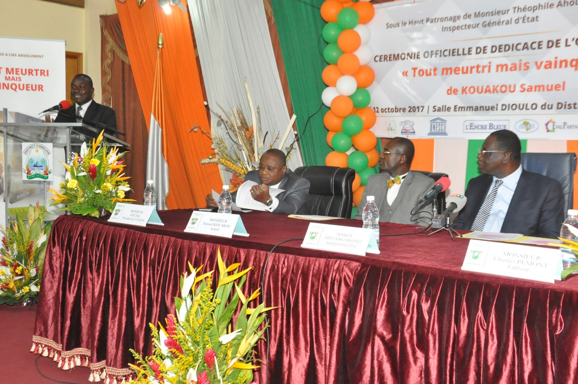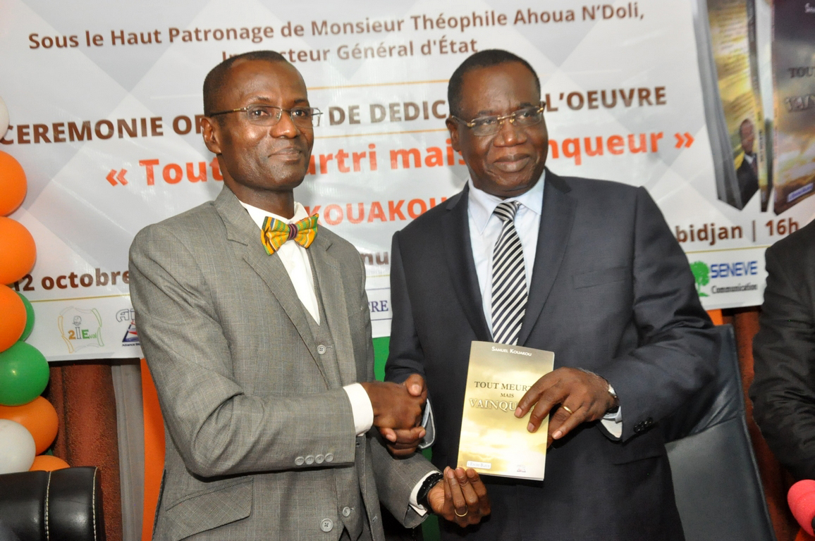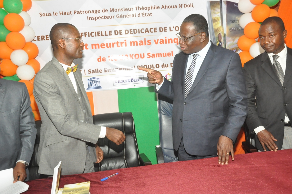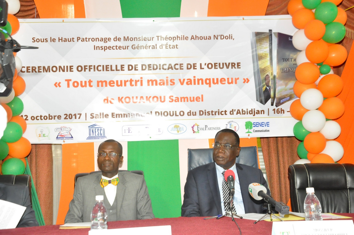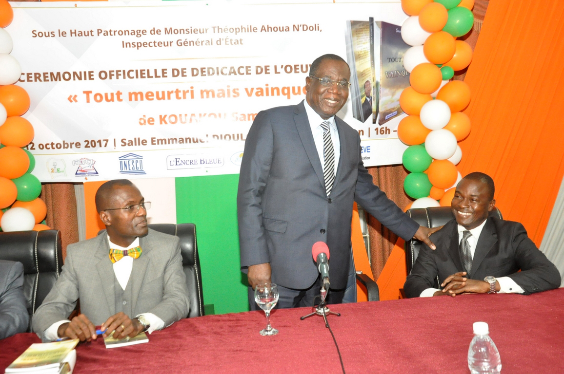A l’occasion de la dédicace du livre « Tout meurtri mais vainqueur » de Samuel Kouakou, parrainée par l’Inspecteur Général d’Etat, Théophile Ahoua N’Doli, le 12 octobre 2017